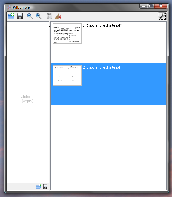 La partie gauche de la fenêtre peut s’agrandir pour afficher un presse-papier et y déposer des pages de façon temporaire, en attendant de trouver leur destination.
